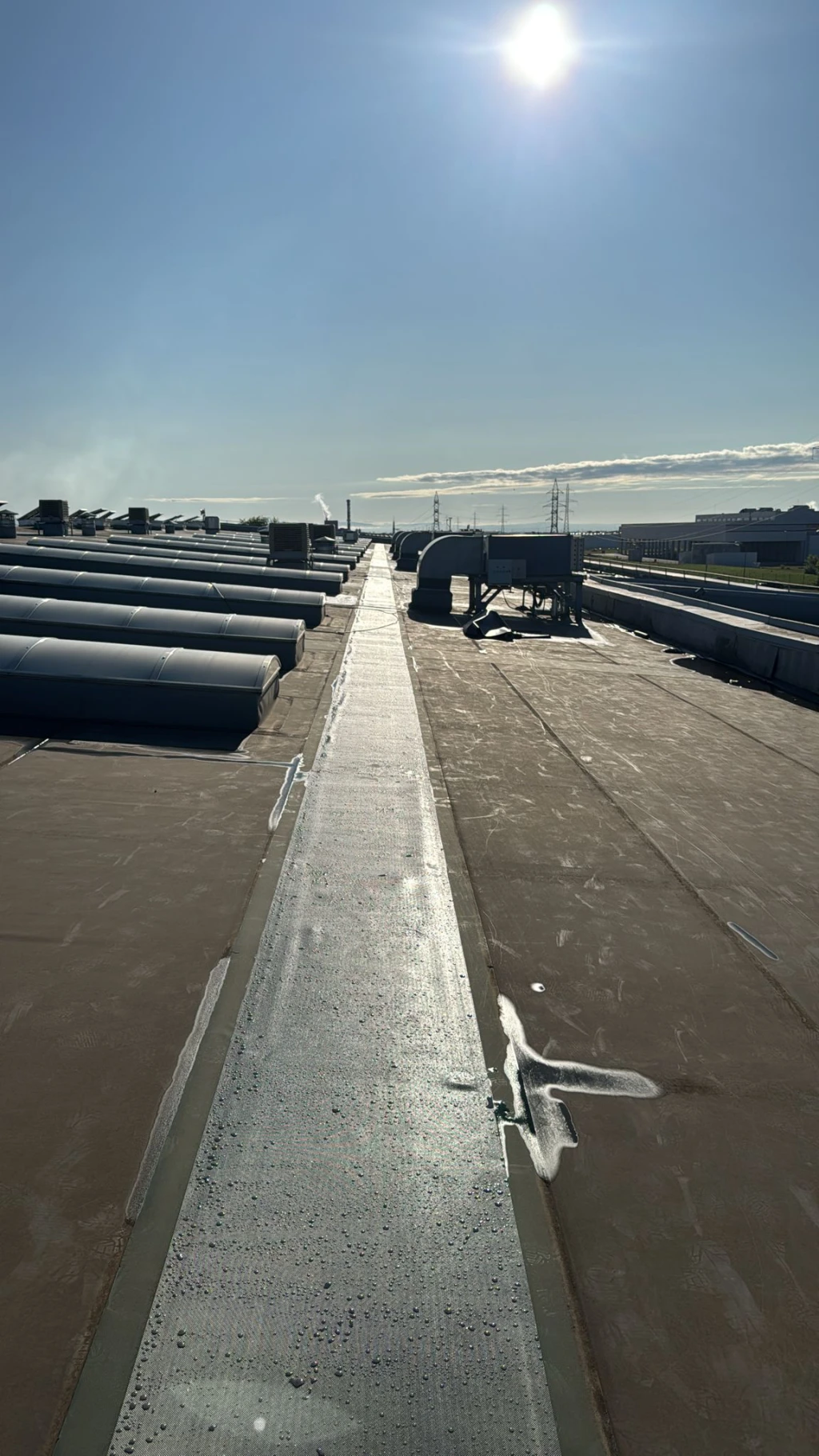 Pentru a susține noile investiții ale beneficiarului, am intervenit în anumite zone unde s-a dublat membrana hidroizolantă, pregătind astfel acoperișul pentru montajul panourilor fotovoltaice – o soluție sustenabilă și eficientă energetic.