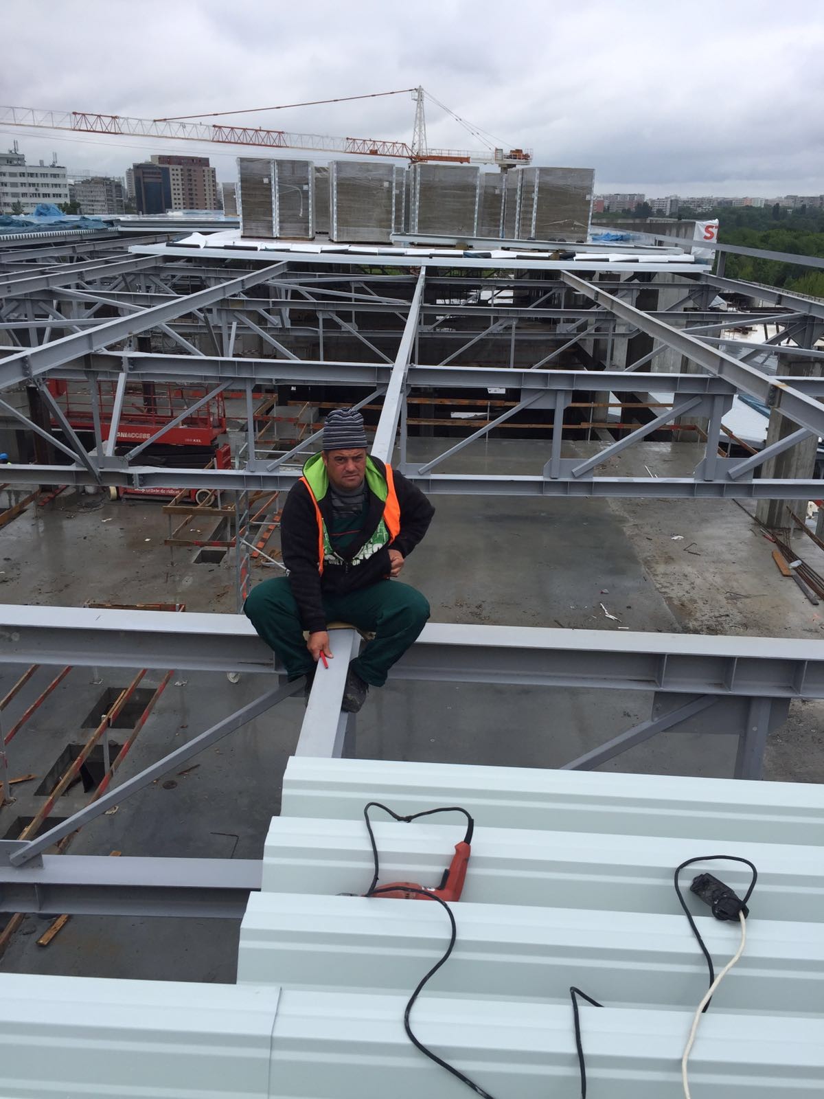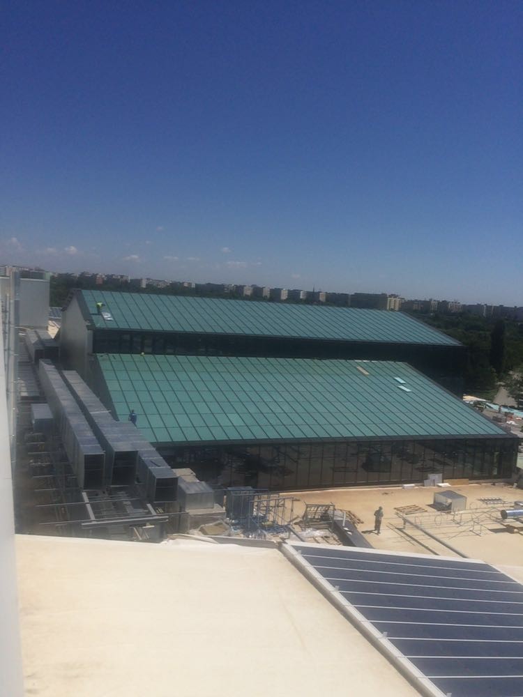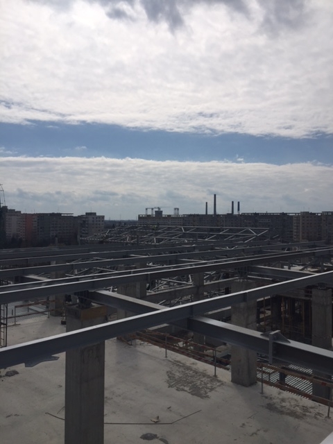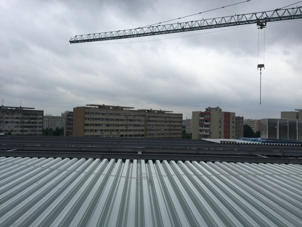 Montat sistem complet de acoperis ( tabla, vata si membrana TPO de 1,8 mm SIKA) si montat fatade din panouri de tip KINGSPAN
